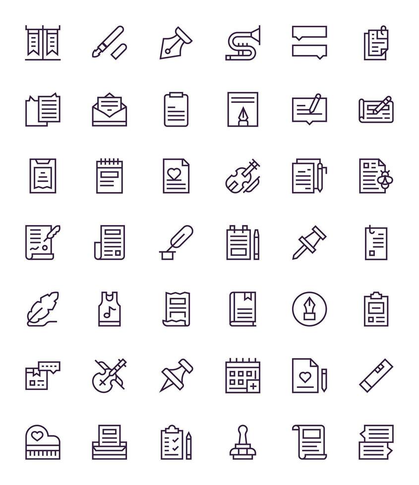 42 Grid Fitted Regular Line Icons from Note Collection Free Vector