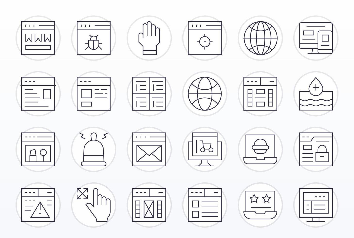 24 Grid Fitted Icons themed around Website in 128x128 Thin Line format Free Vector