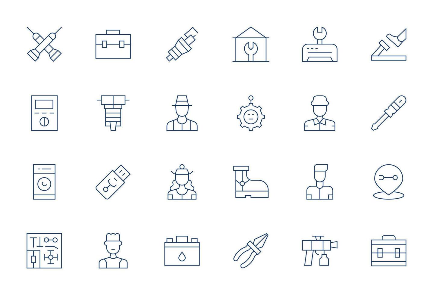 24 Icons inspired by Technician in Pixel Optimized High Resolution Thin Line quality Free Vector