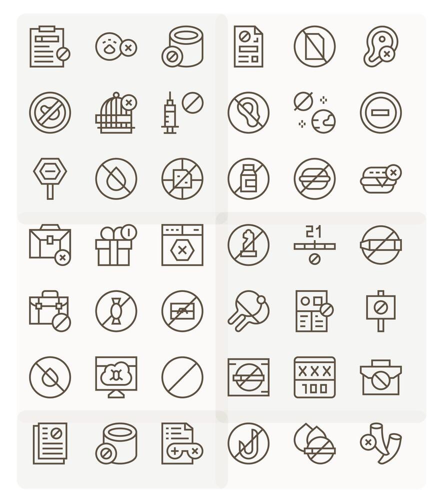 42 Icons inspired by Not Allowed in PIXEL Perfect High Resolution Regular Line quality vector