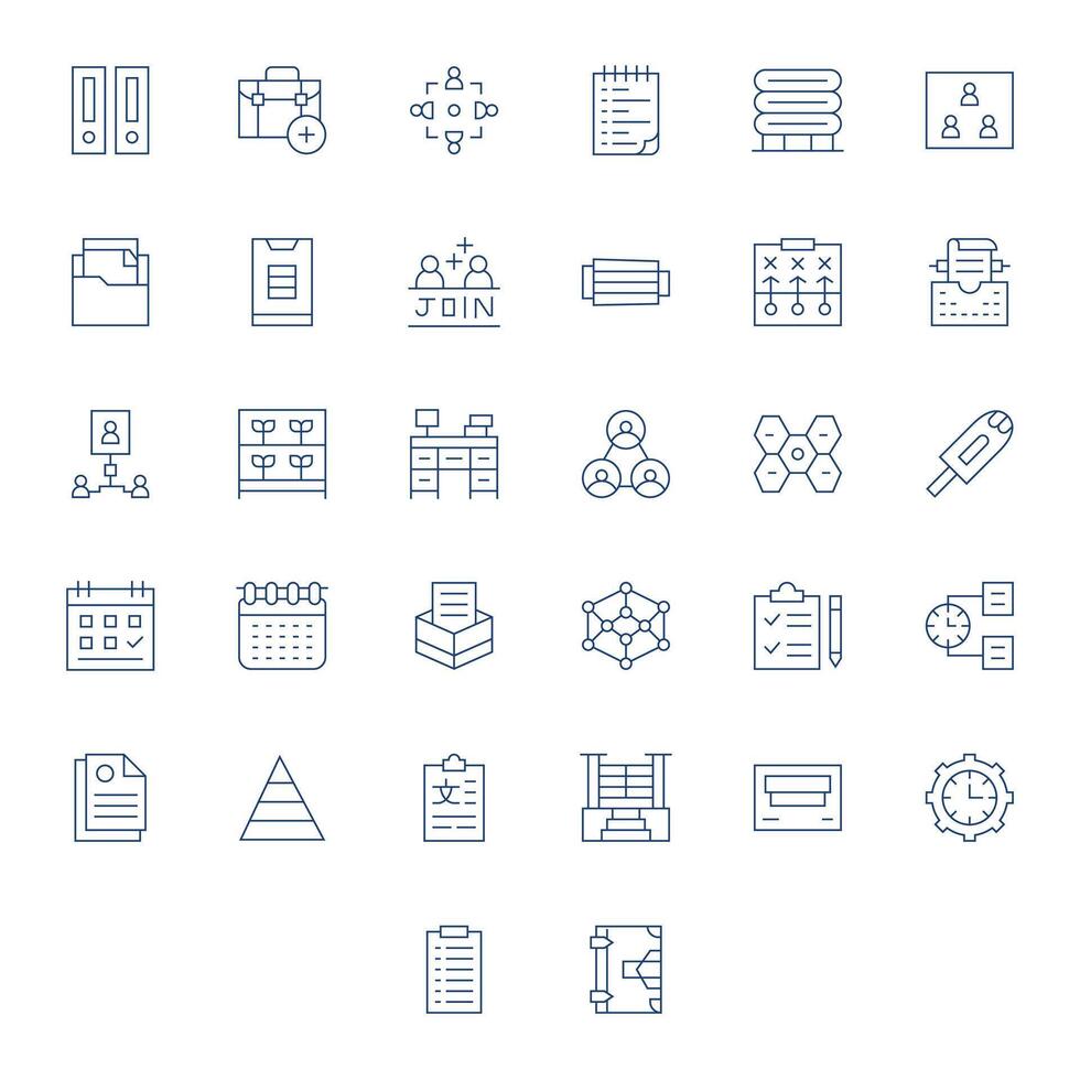32 Icons for Organization featuring 128x128 Pixel Optimized Thin Line Graphics vector