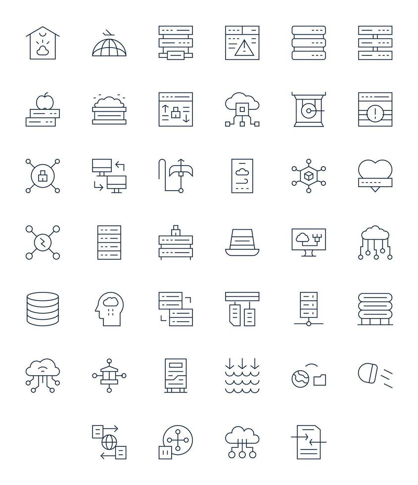 40 Thin Line Icons designed for Server in 128x128 Pixel Aligned format Free Vector