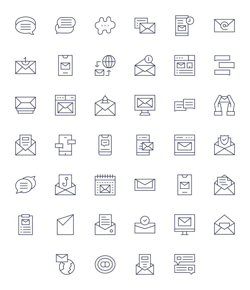 40 64x64 Pixel Optimized Icons for Inbox in Thin Line Theme Free Vector