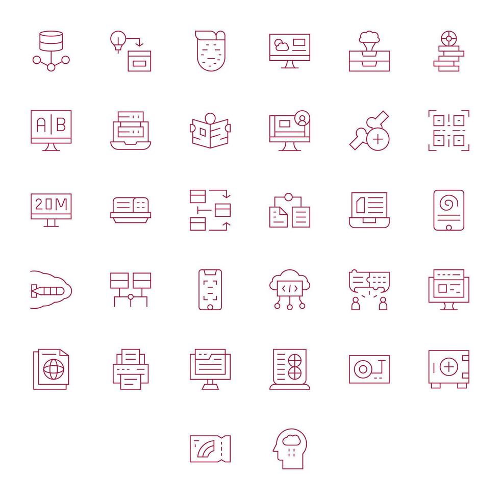 32 Thin Line Pixel Optimized Icons tailored for Information Technology 128x128 interface vector
