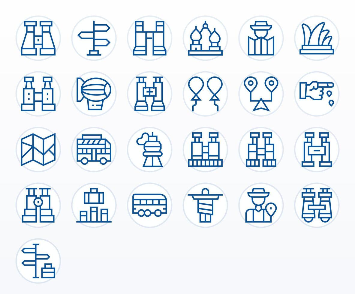 25 Regular Line Icons for Sightseeing in crisp 64x64 Pixel Optimized resolution vector