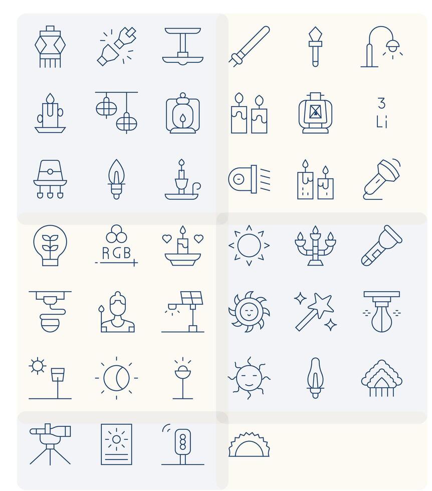 40 Detail Enhanced Icons themed around Light in High Resolution Thin Line format Free Vector