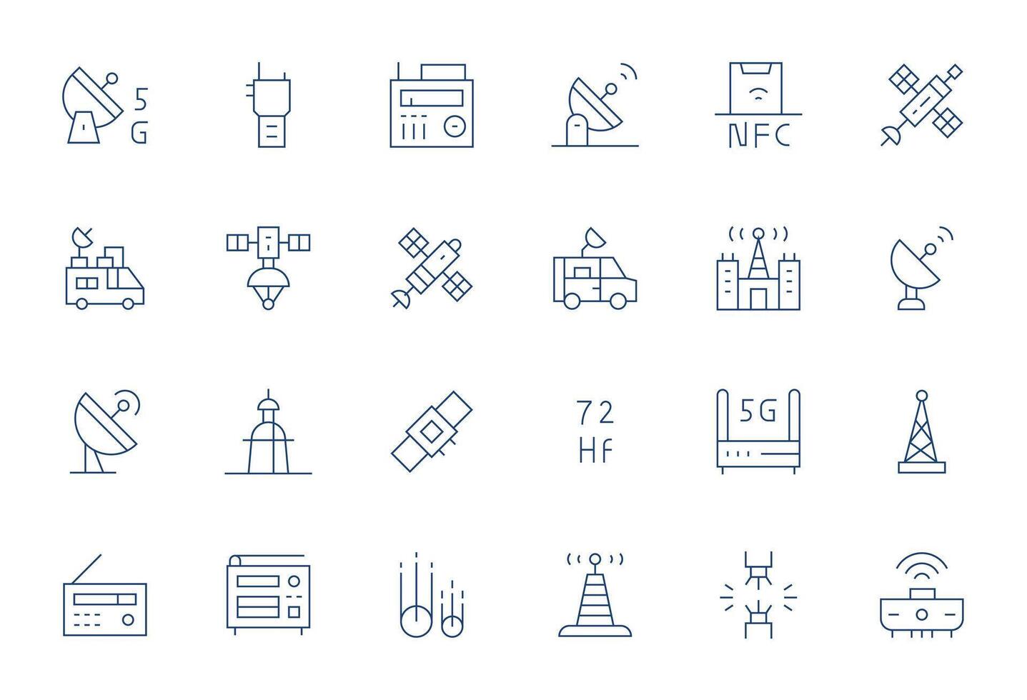 24 Icons for Antenna featuring High Resolution Grid Fitted Thin Line Graphics Free Vector