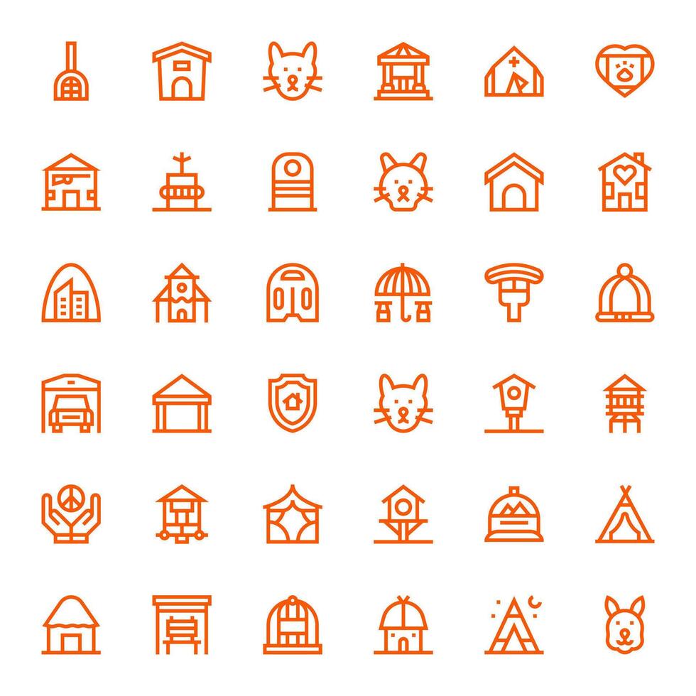 Shelter Icon Set with 36 Bold Line High Resolution Pixel Optimized Graphics vector