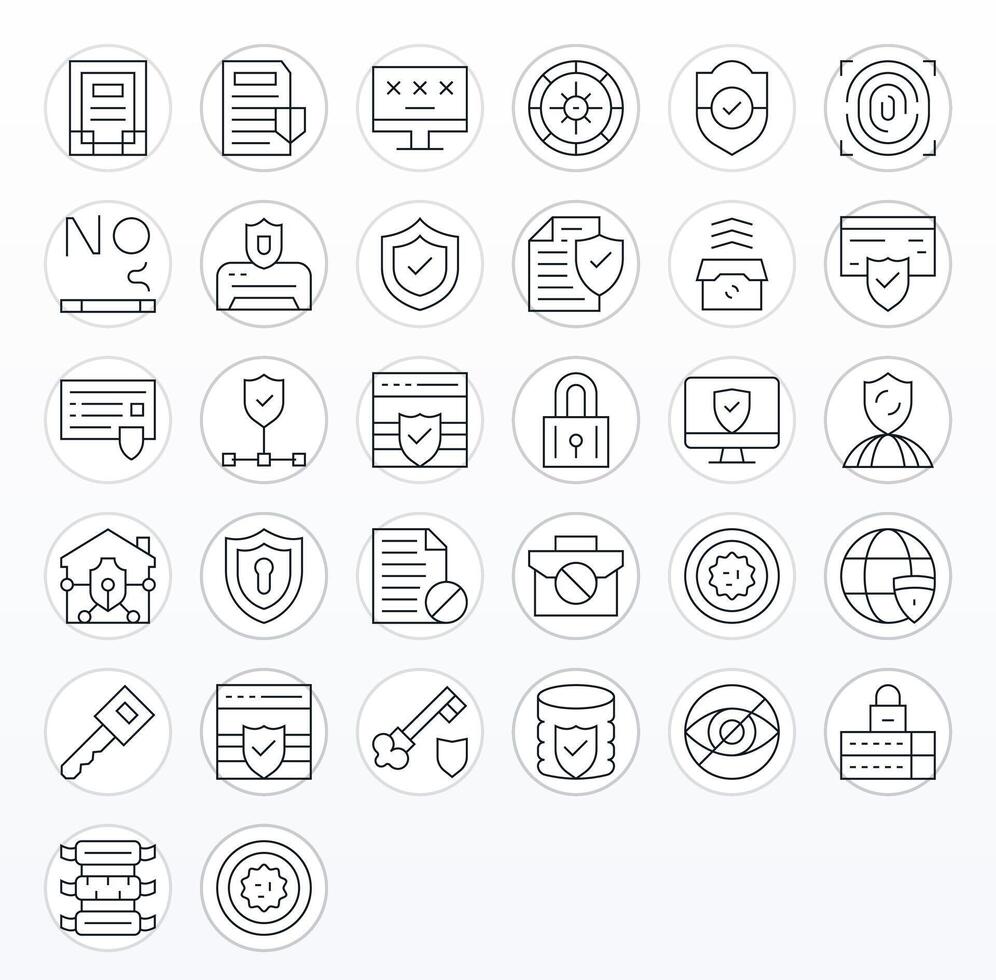 Data Protection Scalable Set featuring 32 PIXEL Perfect Thin Line 256x256 Icons vector