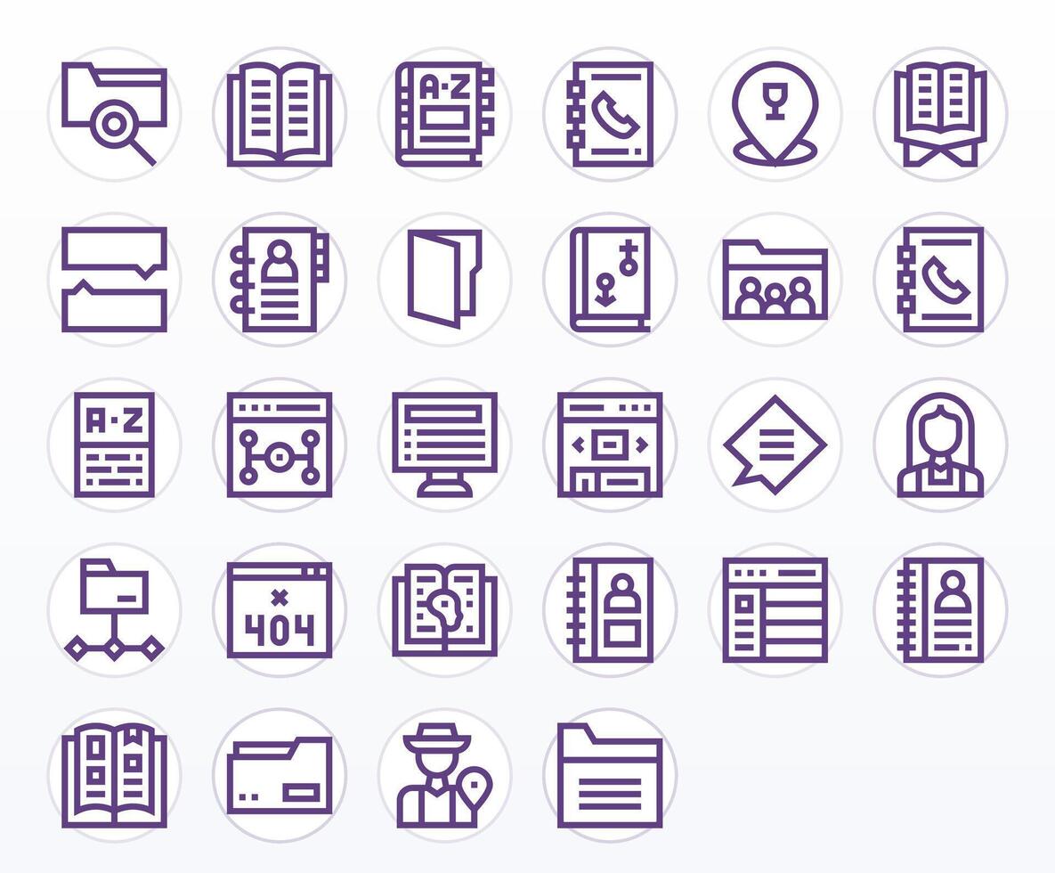 Directory Comprehensive Bundle with 28 Grid Fitted Bold Line High Resolution Icons vector