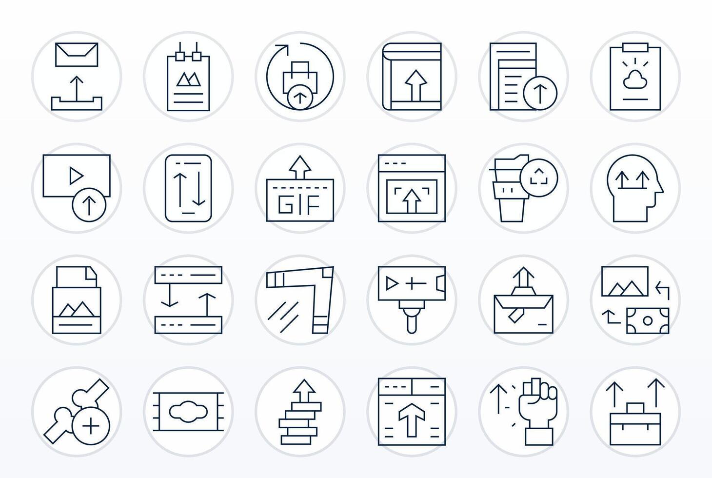 24 Pixel Optimized 256x256 Icons for File Upload in elegant Thin Line design vector