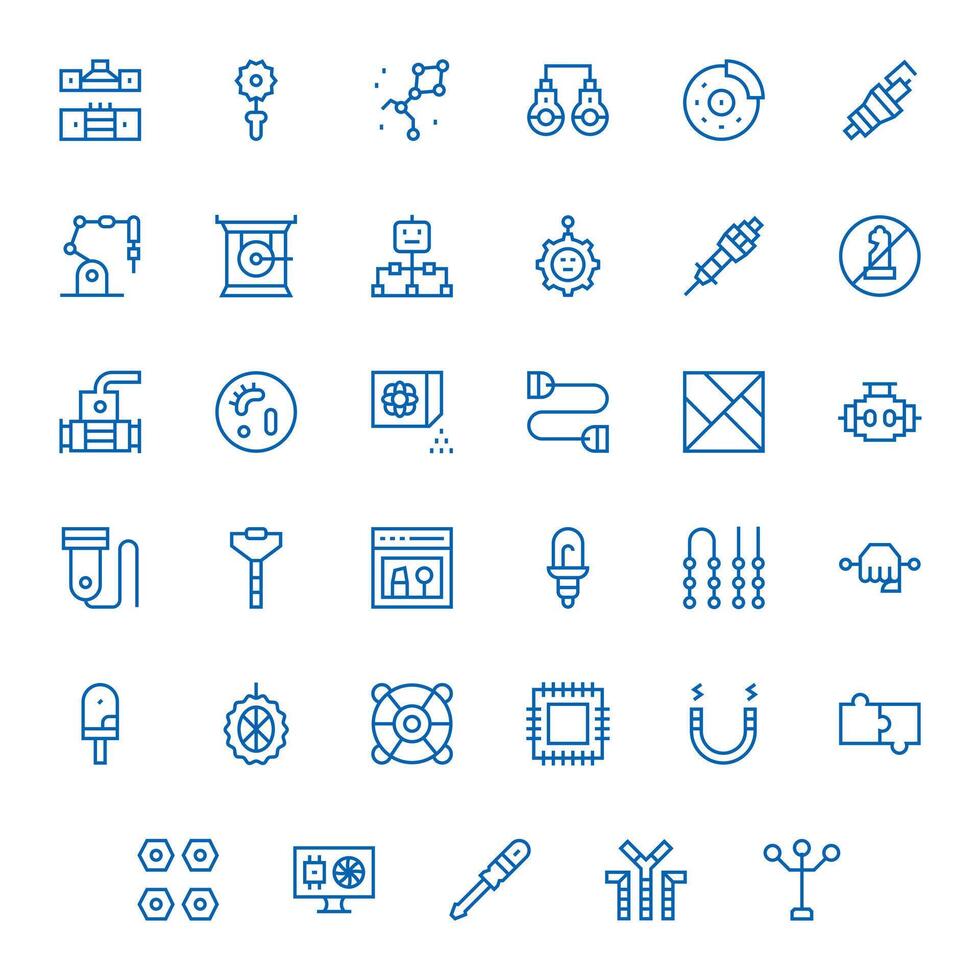 Component Comprehensive Bundle with 35 Pixel Optimized Regular Line 64x64 Icons Free Vector