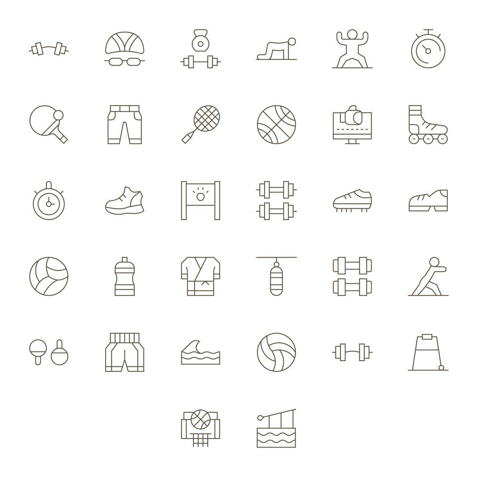 32 Pixel Aligned Thin Line Icons designed for Exercise Interface Free Vector