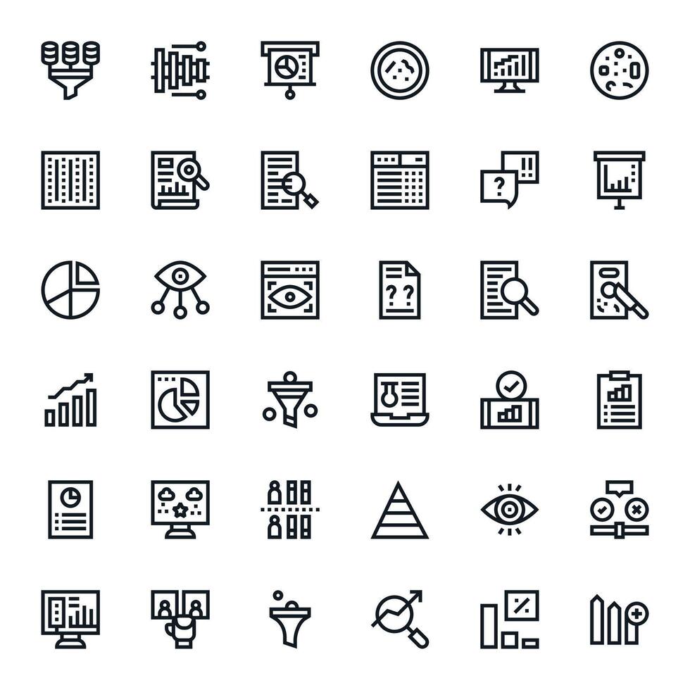 36 Bold Line Icons for Data Analysis in crisp High Resolution Pixel Optimized resolution vector