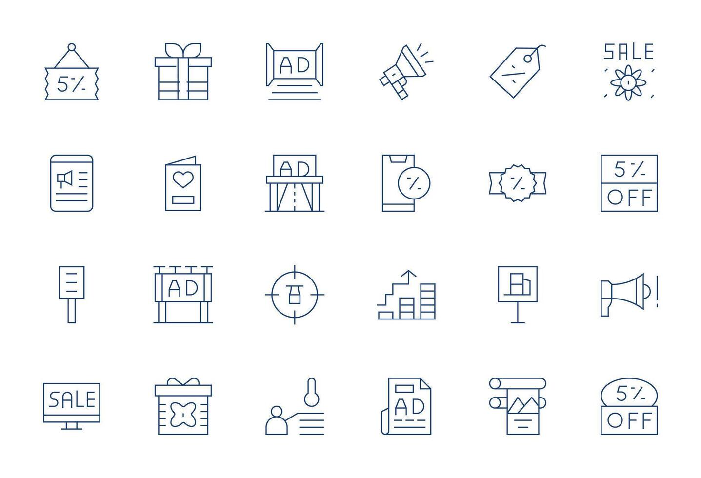 24 High Resolution Thin Line Icons for Promotion with Pixel Optimized precision vector