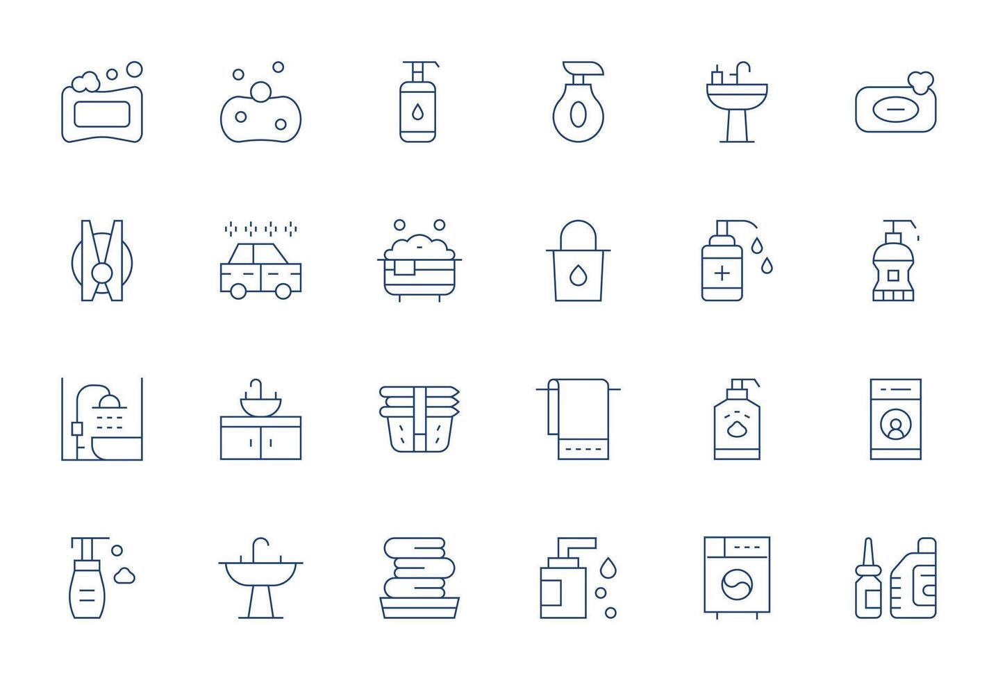 Wash Scalable Set featuring 24 Pixel Aligned Thin Line High Resolution Icons vector