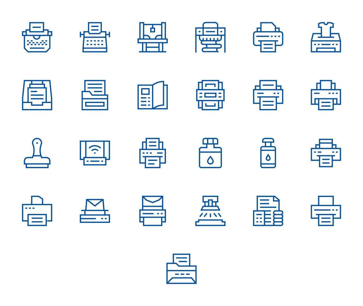 Printing Comprehensive Bundle with 25 Display Perfect Regular Line 256x256 Icons vector