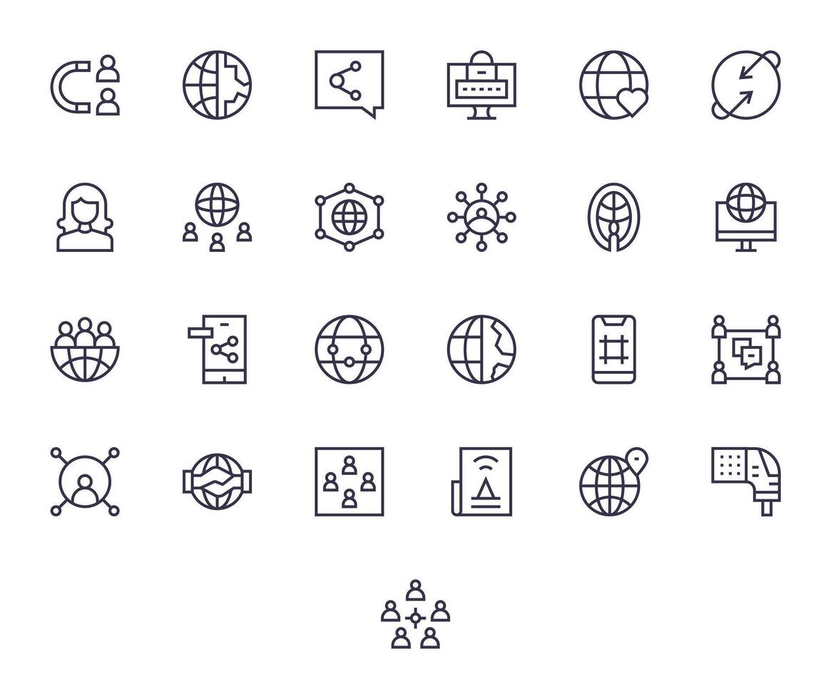 Networking Icon Toolkit featuring 25 PIXEL Perfect 64x64 Regular Line elements vector