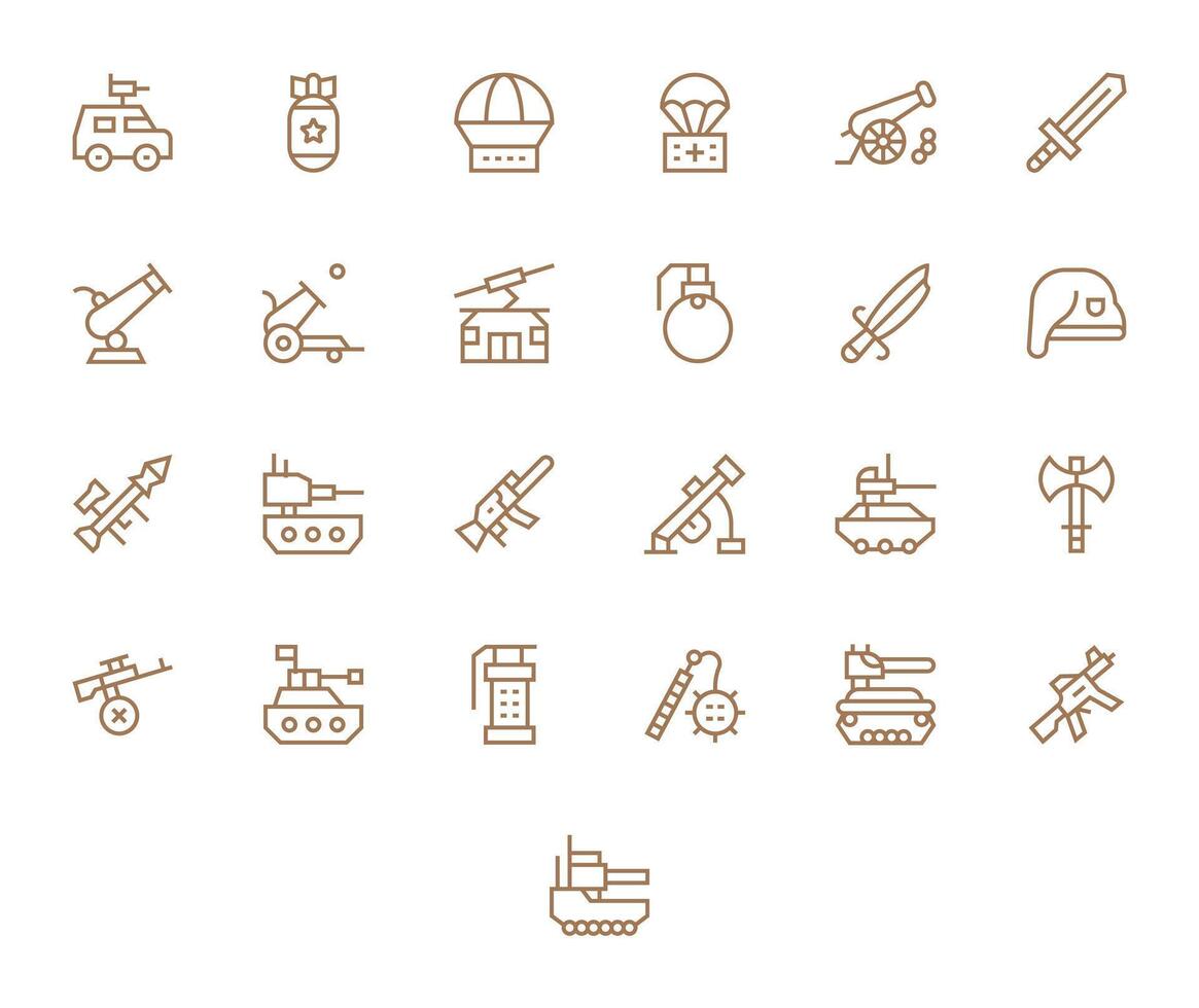 25 High Resolution Icons for Military Equipment in Editable Regular Line Format vector