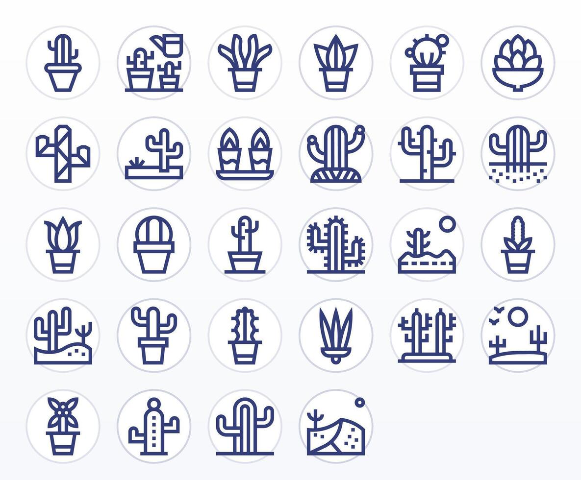 Cactus Icon Set with 28 Bold Line 64x64 Pixel Optimized Graphics vector