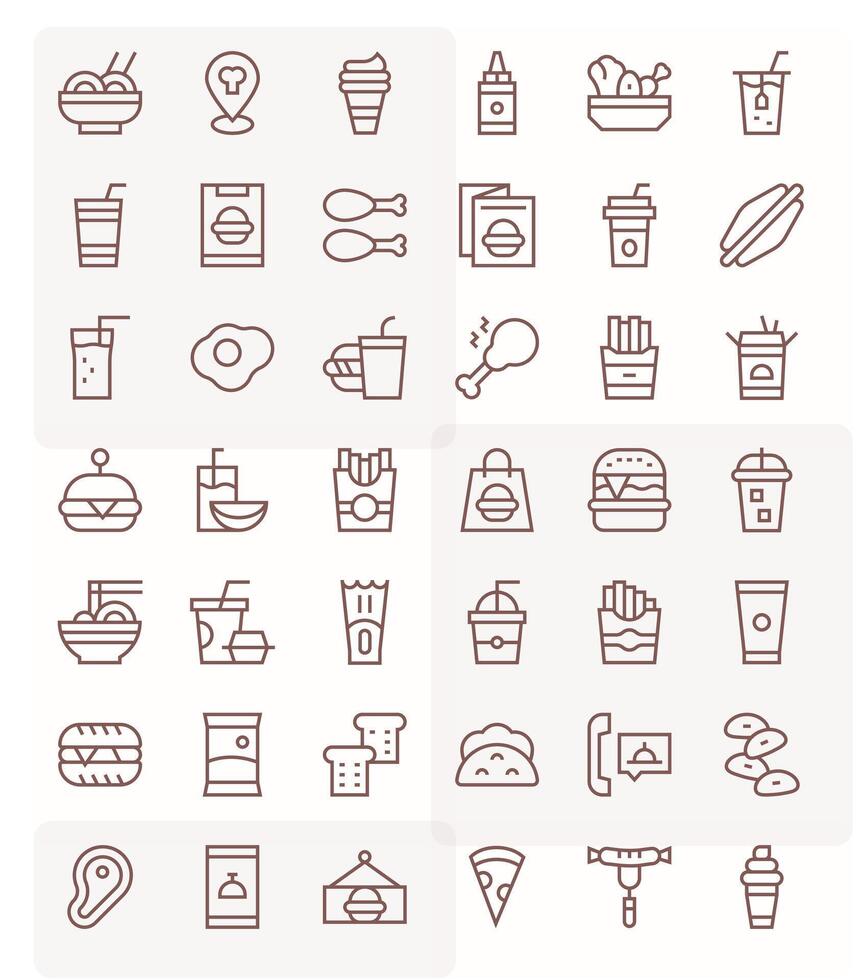 42 Pixel Optimized Icons themed around Fast Food in 256x256 Regular Line format vector