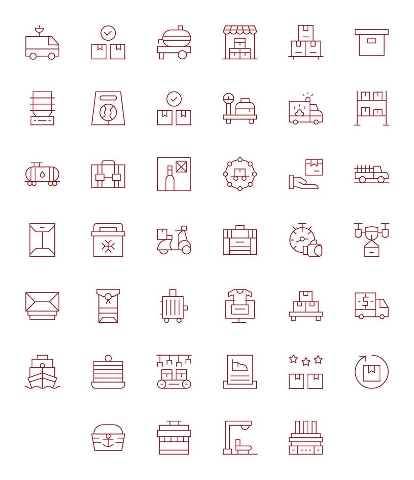 Shipping Design Icons featuring 40 Pixel Optimized Thin Line Style Free Vector