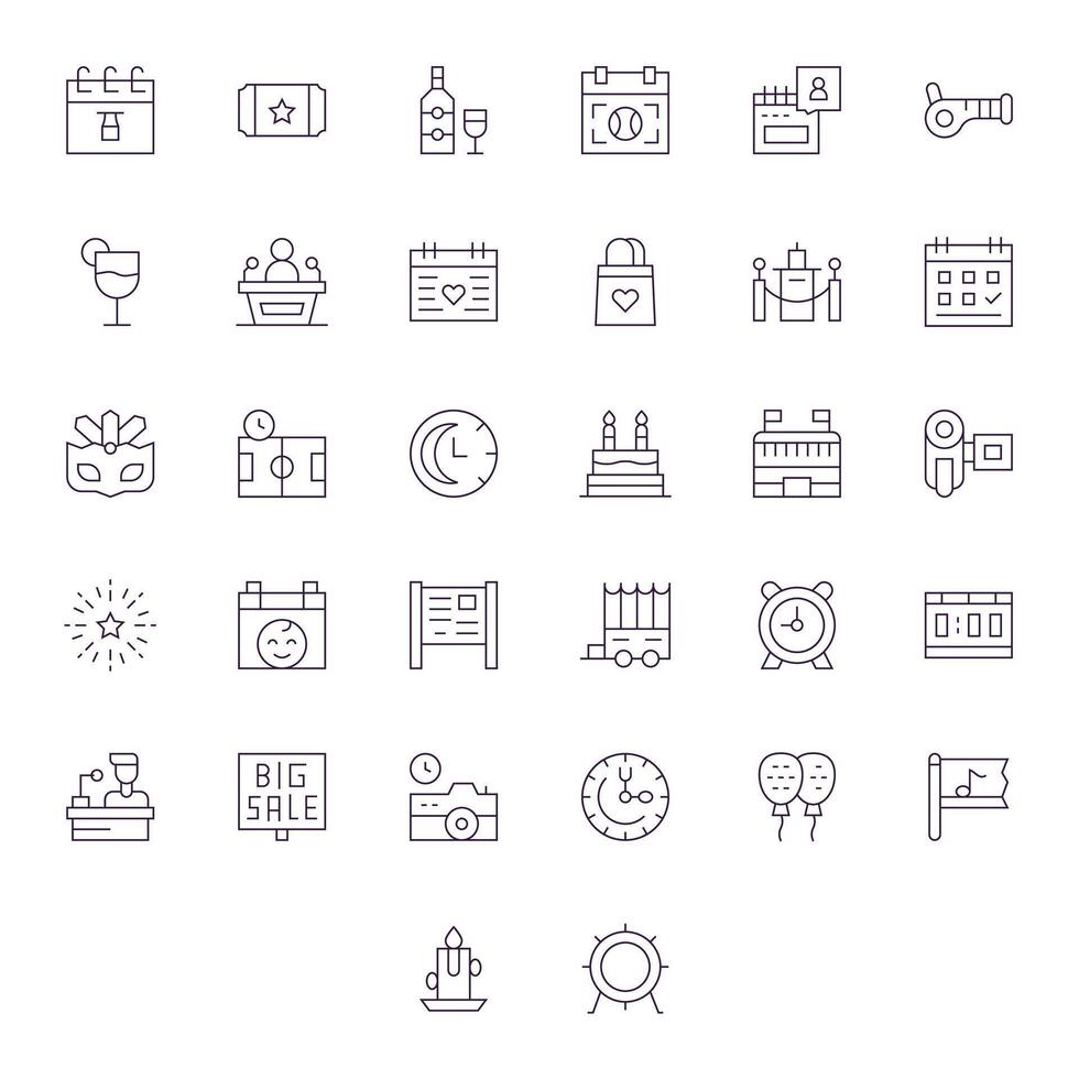32 Thin Line Pixel Optimized Icons crafted for Event 128x128 applications vector