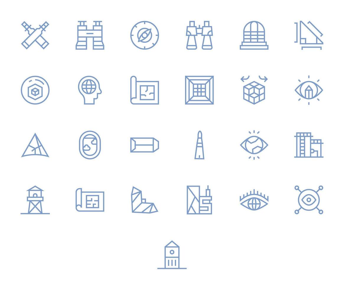 25 Icons inspired by Perspective in Pixel Optimized High Resolution Regular Line quality Free Vector