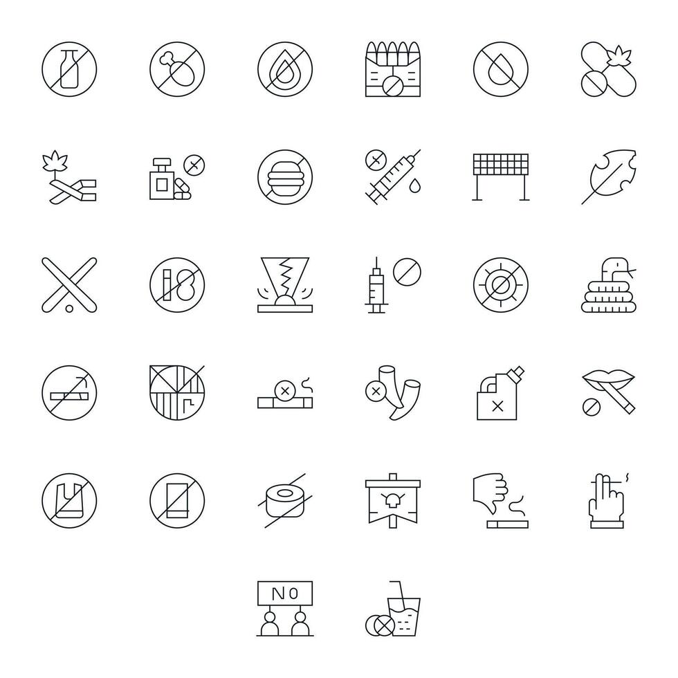 32 Icons for Prohibition optimized in Editable 256x256 Thin Line resolution Free Vector