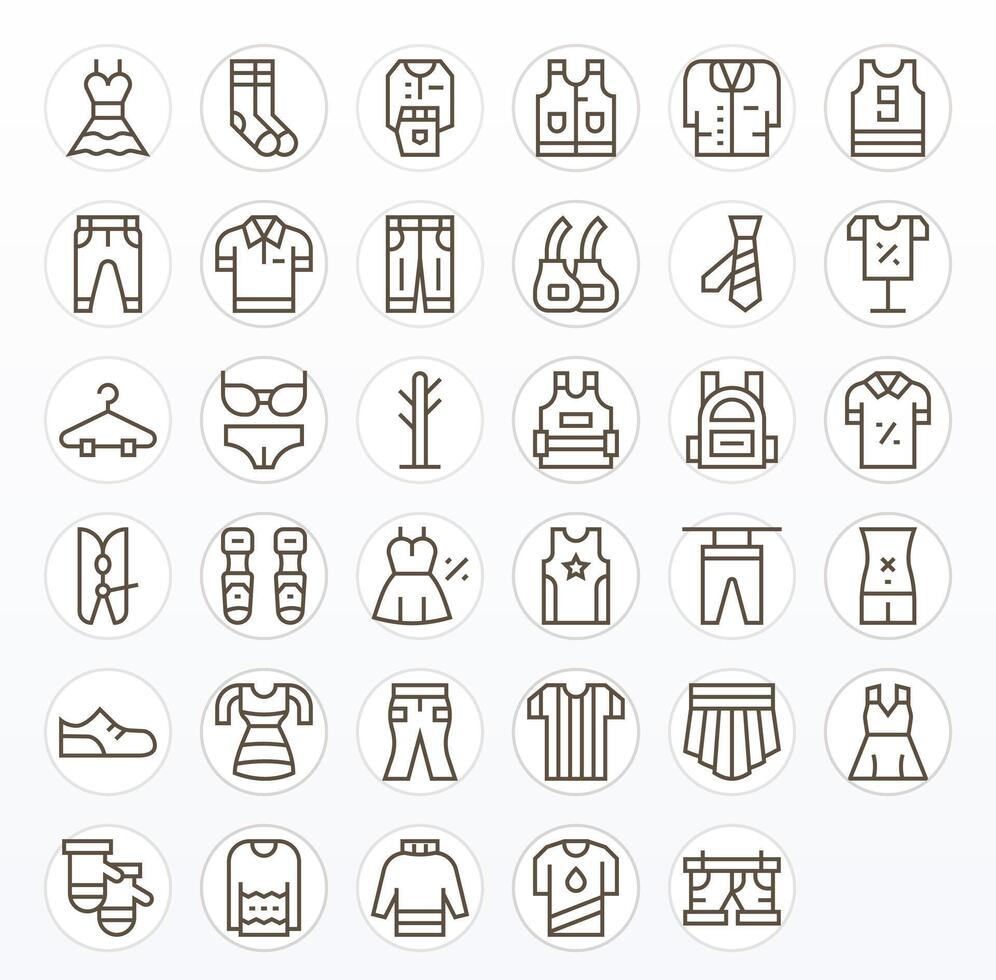 35 High Resolution Regular Line Icons optimized for Apparel Pixel Aligned display vector