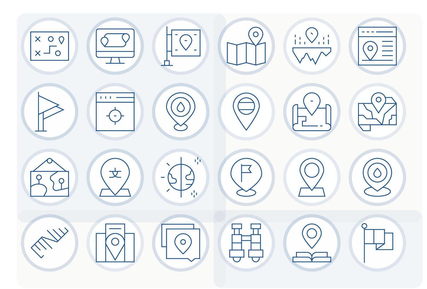 Geographical Icon Repository containing 24 Thin Line Retina Ready Grid Fitted graphics vector