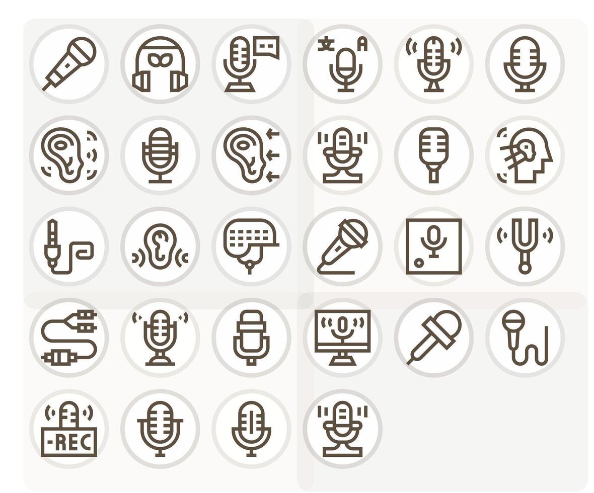 28 Grid Fitted Bold Line Icons from Audio Input Collection Free Vector