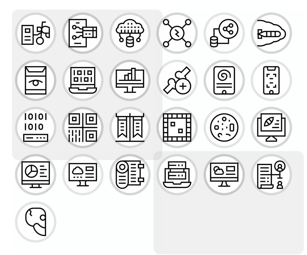 25 Regular Line Grid Fitted Icons crafted for Digital Data 128x128 applications vector