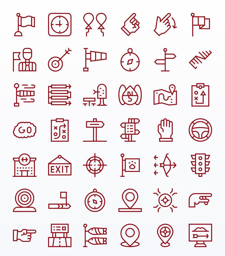 42 256x256 Icons for Direction in Pixel Aligned Regular Line Format Free Vector