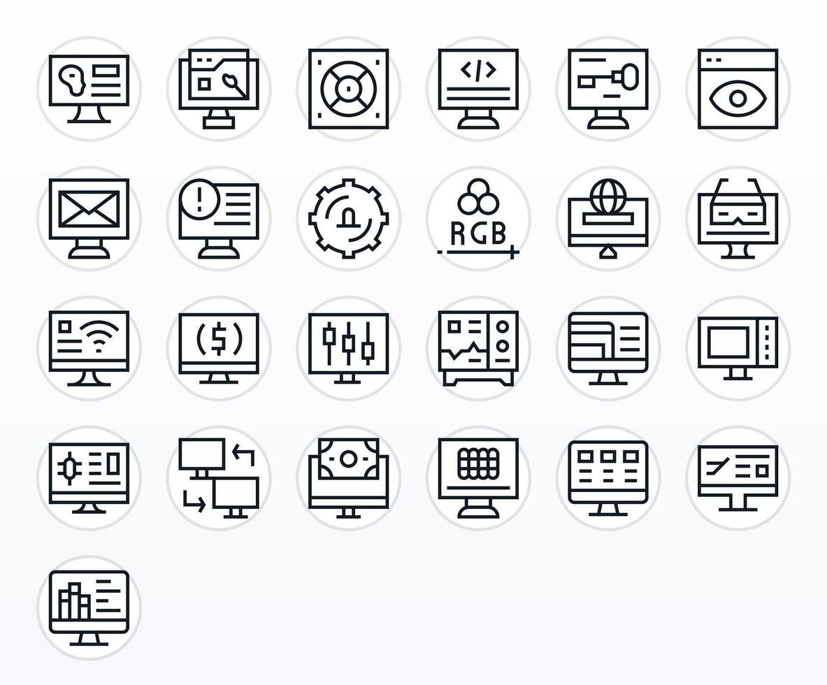 Monitor Icon Toolkit featuring 25 Grid Fitted 256x256 Regular Line elements vector