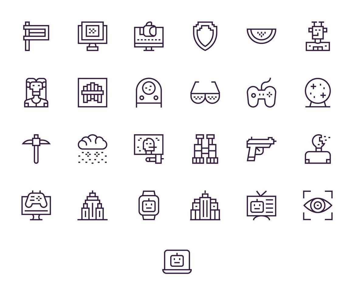 25 Regular Line Pixel Aligned 256x256 Icons from Pixelated Suite vector