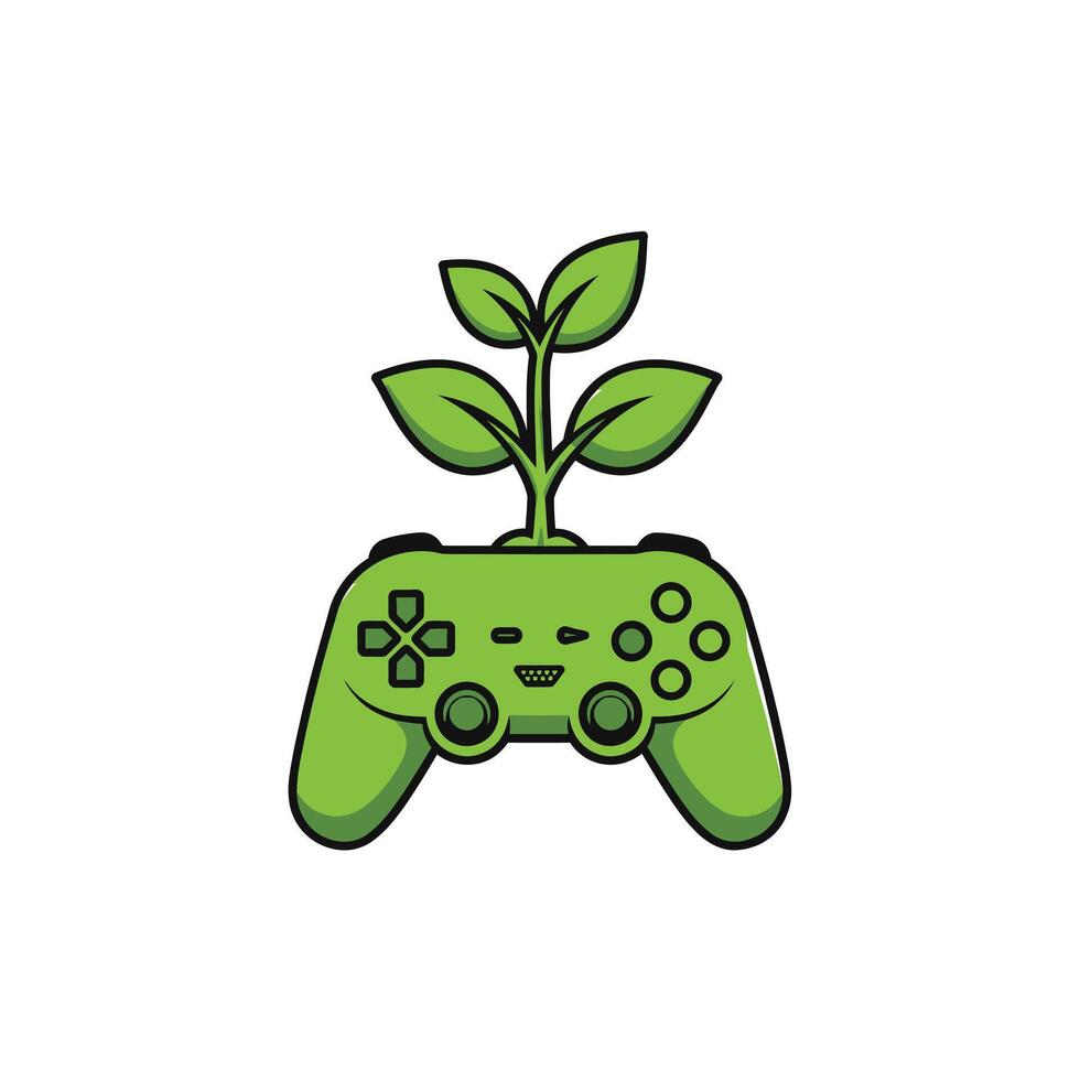 Logo design of a green gaming controller with a tree on top vector
