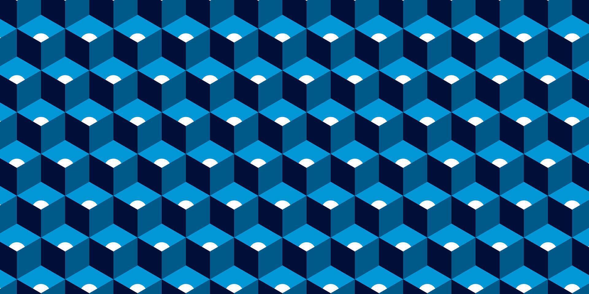 geometric pattern with blue cube shapes and white dots creating a modern 3D illusion. vector