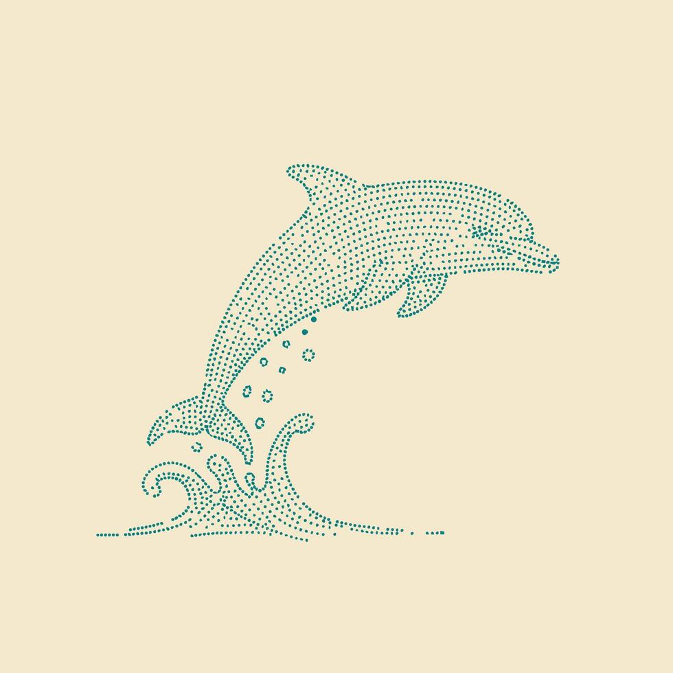 Stylized dolphin leaping out of water with splash effect in a minimalist dotted line art style on a light Pro Vector