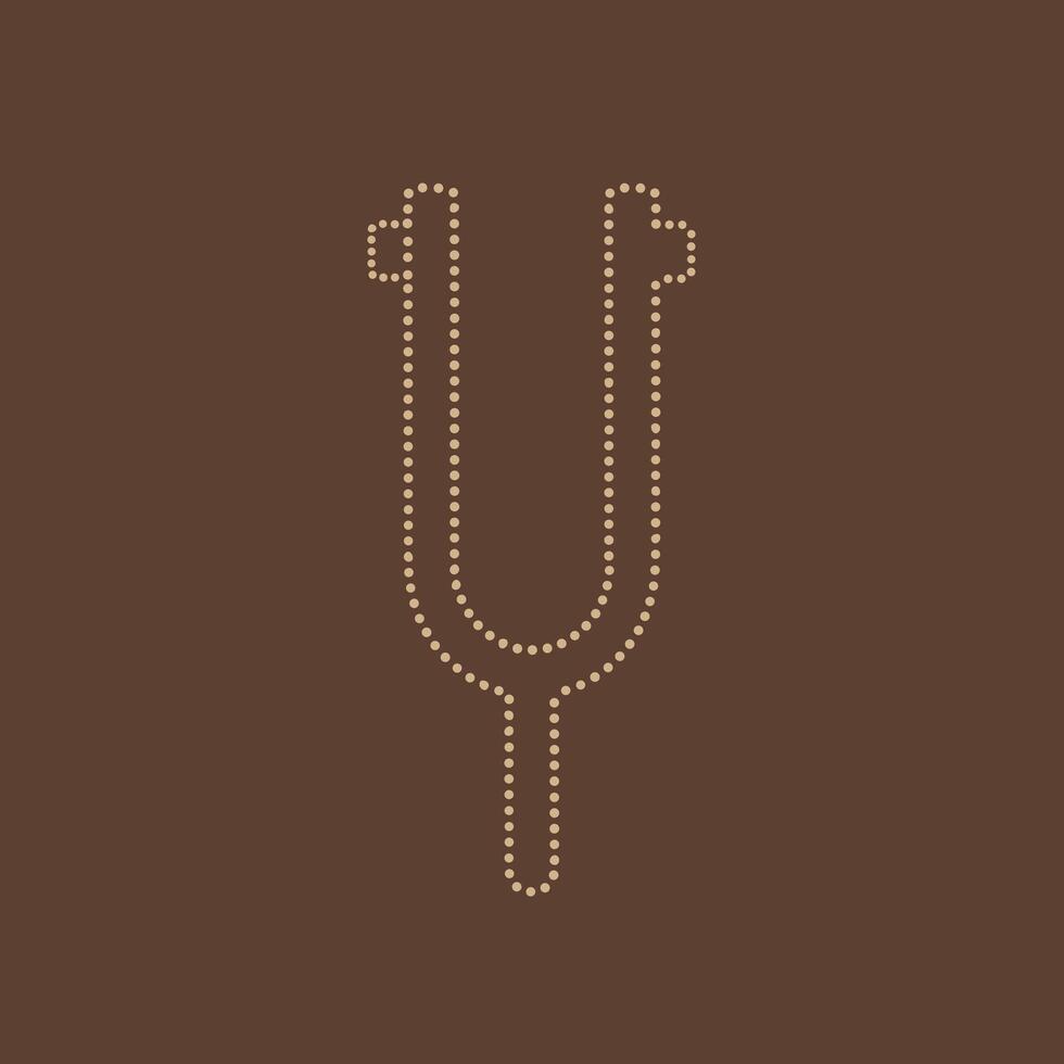 Minimalist design featuring a dotted outline of a tuning fork on a solid brown , emphasizing simplicity and elegance vector