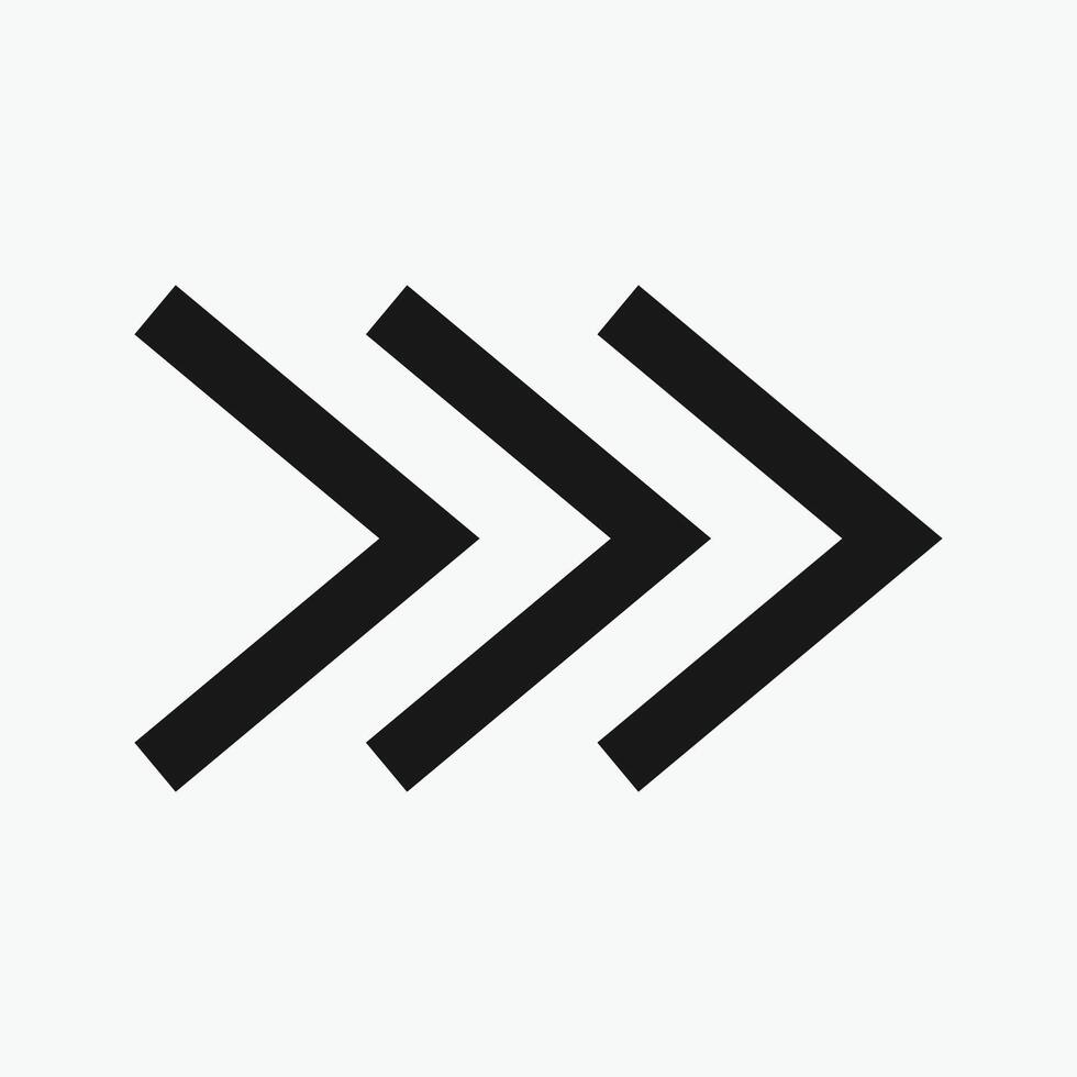 Arrows icon. Cursor. Modern simple arrows, Three black chevron symbols arranged in a row, pointing to the right. Pro Vector