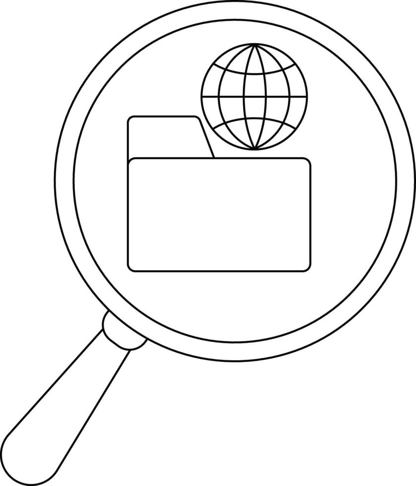 A magnifying glass focuses on a folder icon topped by a globe suggesting data search vector