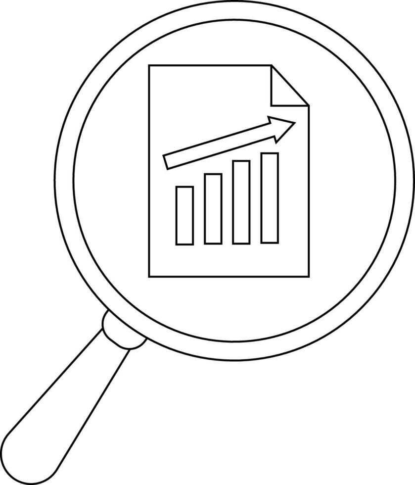 A magnifying glass focuses on a document with a bar graph and upward arrow vector
