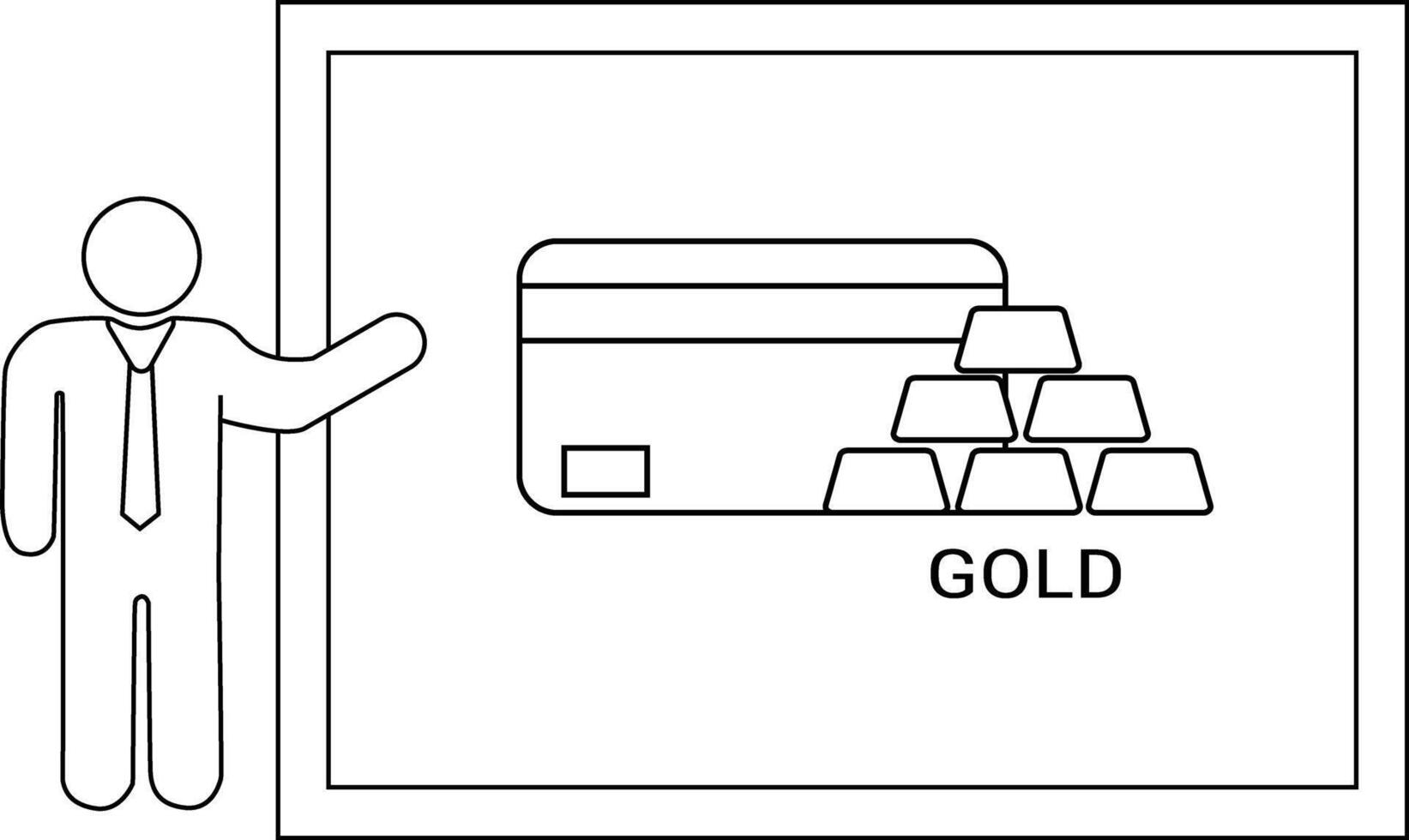 A presentation featuring a stick figure pointing to a screen displaying a credit card and gold bars vector