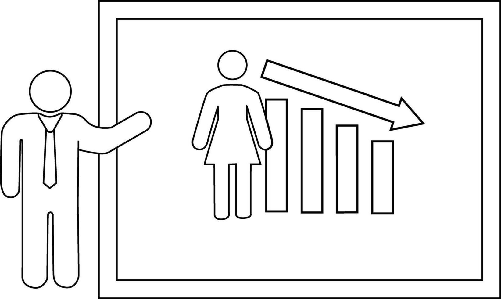 Presenter with descending bar chart The chart has a female figure to the left of the bar graph An arrow points down vector