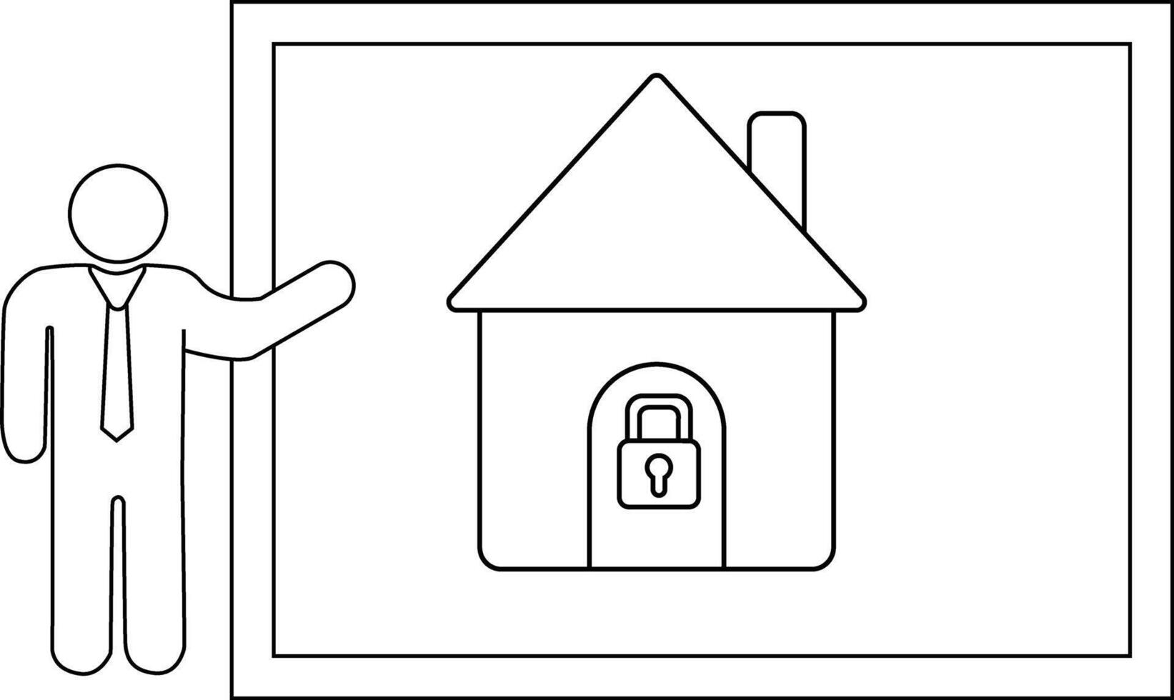 A presenter stands next to a whiteboard showing a house with a padlock symbolizing home security vector