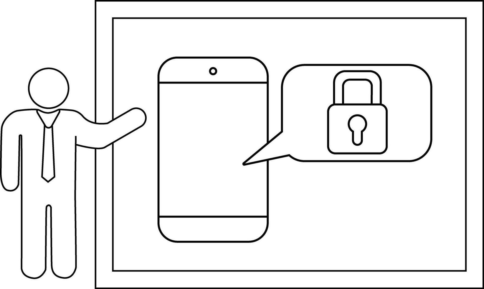 Stickfigure presents a phone with a security lock displayed in a thought bubble vector