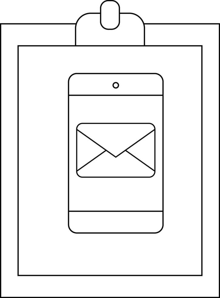 Outlined clipboard with a mobile phone displaying a message icon vector