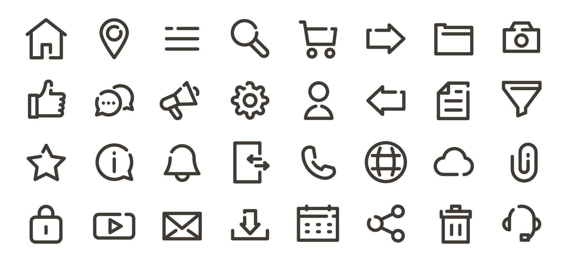 Web, internet and navigation icon set. Minimalist linear symbols for website design, digital UI, Apps, webpages. Editable stroke Pro Vector