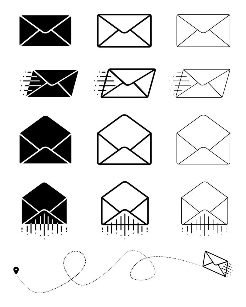 Closed envelope, open envelope and fast moving modern mail symbol. Pro Vector